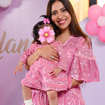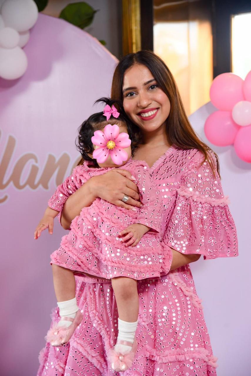 This enchanting Fairy Dress, with intricate mirror work and meticulous, handcrafted ruffle detailing, is perfect for life’s special moments. The fun cap sleeves and can-can underlay add voluminous flair, while the back zip ensures a flawless fit. Contact us to make matching ensembles for your child's birthday!